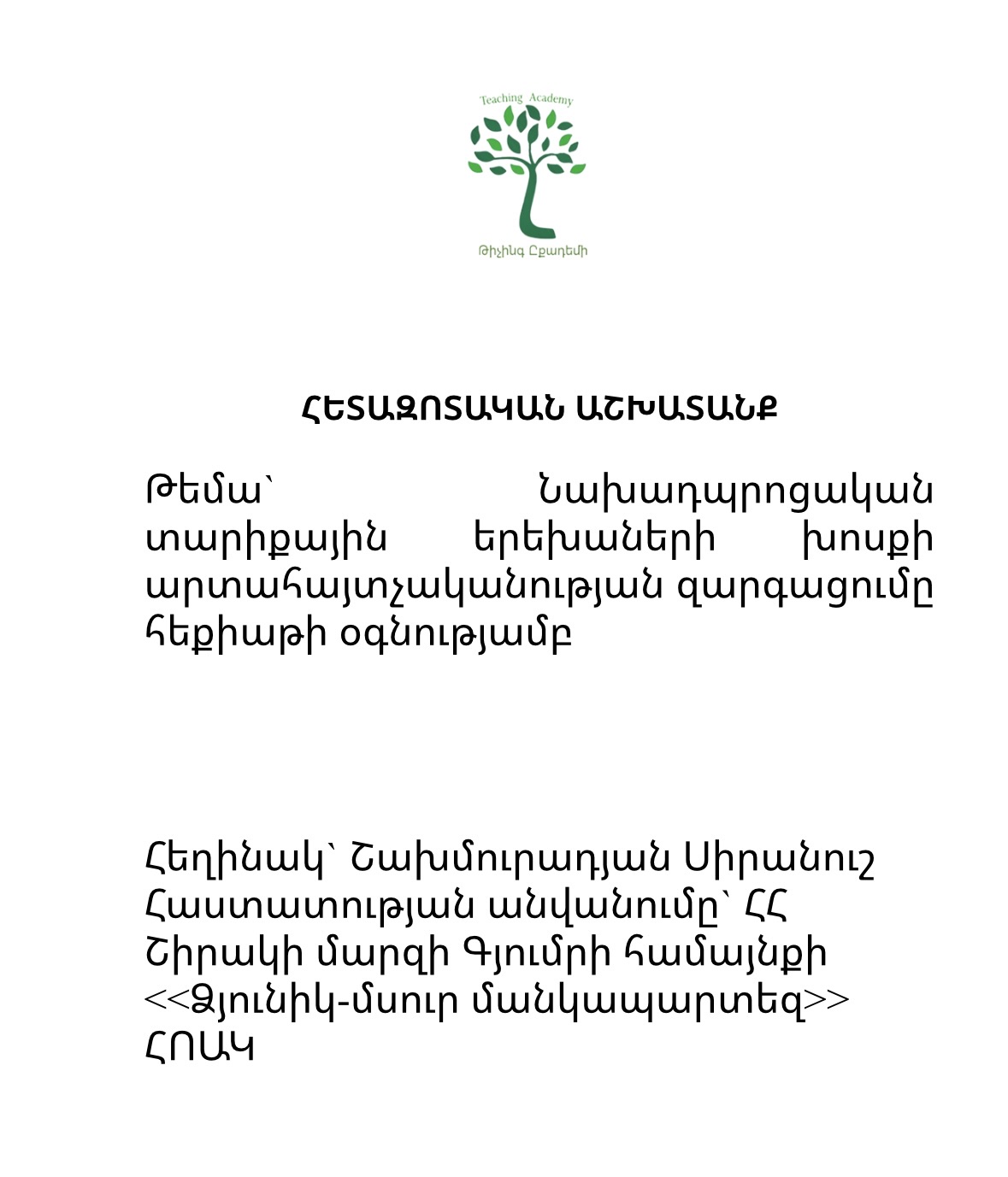 1.Ուսումնասիրել նախադպրոցական տարիքի երեխաների խոսքի զարգացման առանձնահատկությունները: