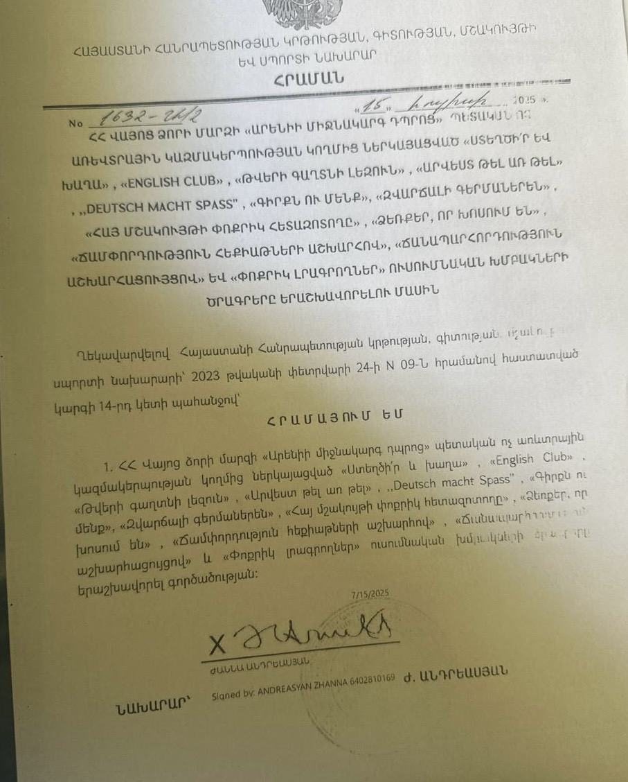 ՀՀ Վայոց ձոր մարզի Արենիի մրջնակագ դպրոց Խմբակի անվանումը՝ «Հայ մշակույթի փոքրիկ հետազոտողը»