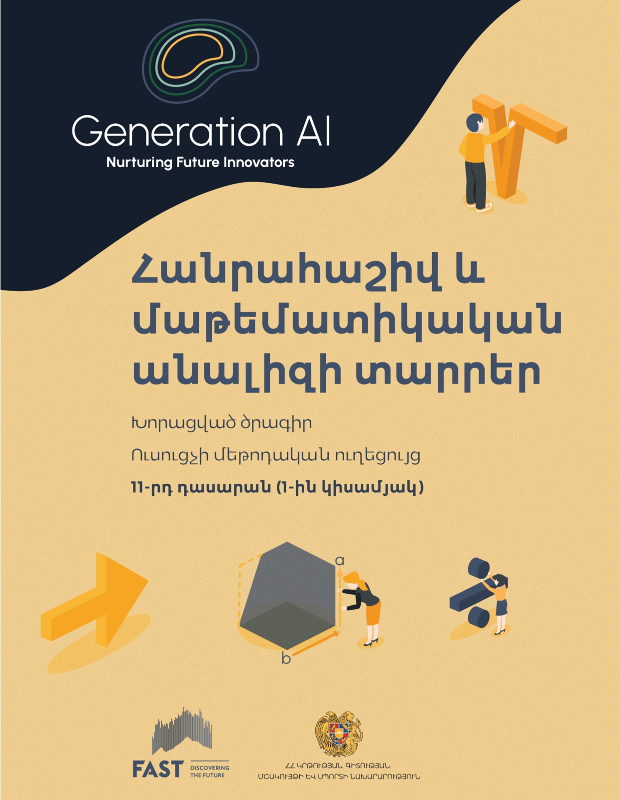 Ուսուցչի մեթոդական ուղեցույցը միտված է օժանդակելու ուսուցիչներին «Արհեստական բանականության (ԱԲ) սերունդ» ծրագրի շրջանակներում՝ «Հանրահաշիվ և մաթեմատիկական անալիզի տարրեր» առարկայի 10-րդ դասարանի խորացված ծրագրի ուսուցման ընթացքում՝ ըստ նոր չափորոշիչների (2023թ․)։ Ուղեցույցում տեղ են գտել դասավանդման և ուսումնառության տարբեր մոտեցումների և մեթոդների նկարագրություններ, որոնք կիրառված են առարկայի բովանդակության վրա։ Առկա են տարաբնույթ դասարանային և արտադասարանային գործունեությունների օրինակներ, էլեկտրոնային և ինտերակտիվ ռեսուրսներ, ինչպես նաև բազմատեսակ վարժություններ և խնդիրներ՝ պահանջվող գիտելիքներն ու հմտությունները ձևավորելու, մաթեմատիկայի և արհեստական բանականության կապը ցույց տալու համար։