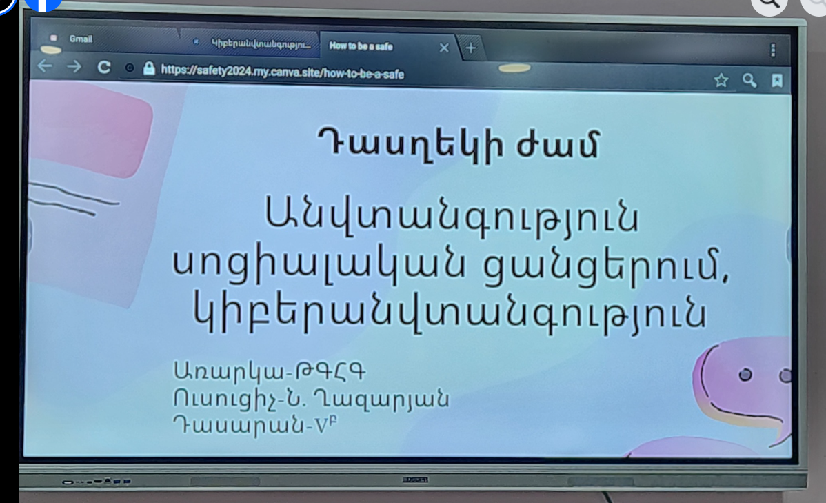 Vբ դասարանի դասղեկի հերթական դասի թեմա էր «Կիբերանվտանգությունը սոցիալական ցանցերում» (դասղեկ` Ն. Ղազարյան)։
