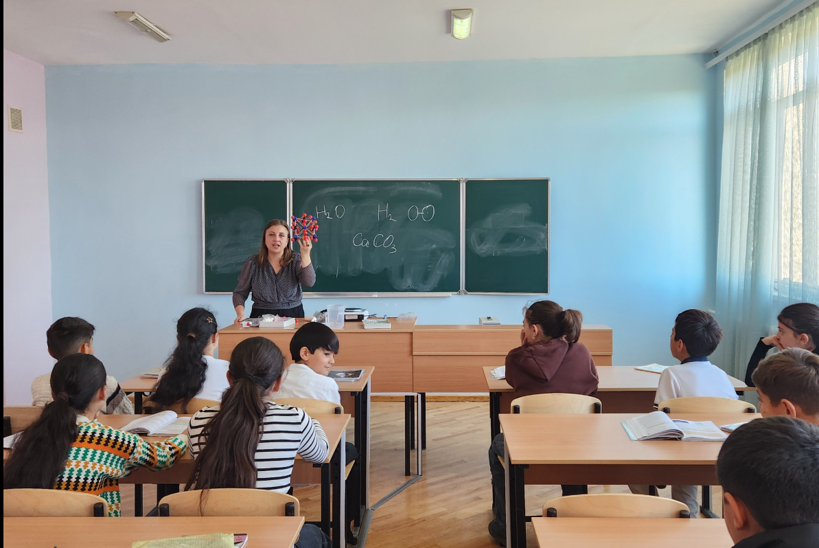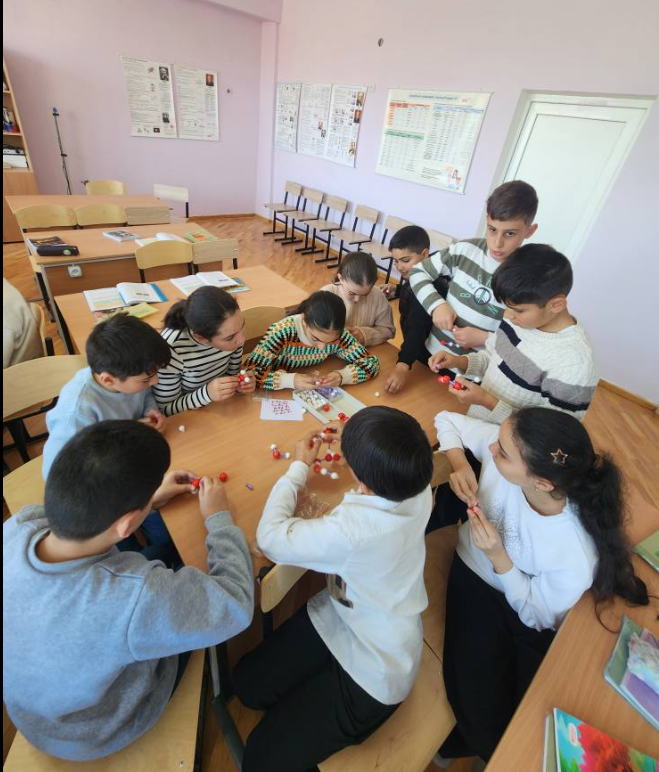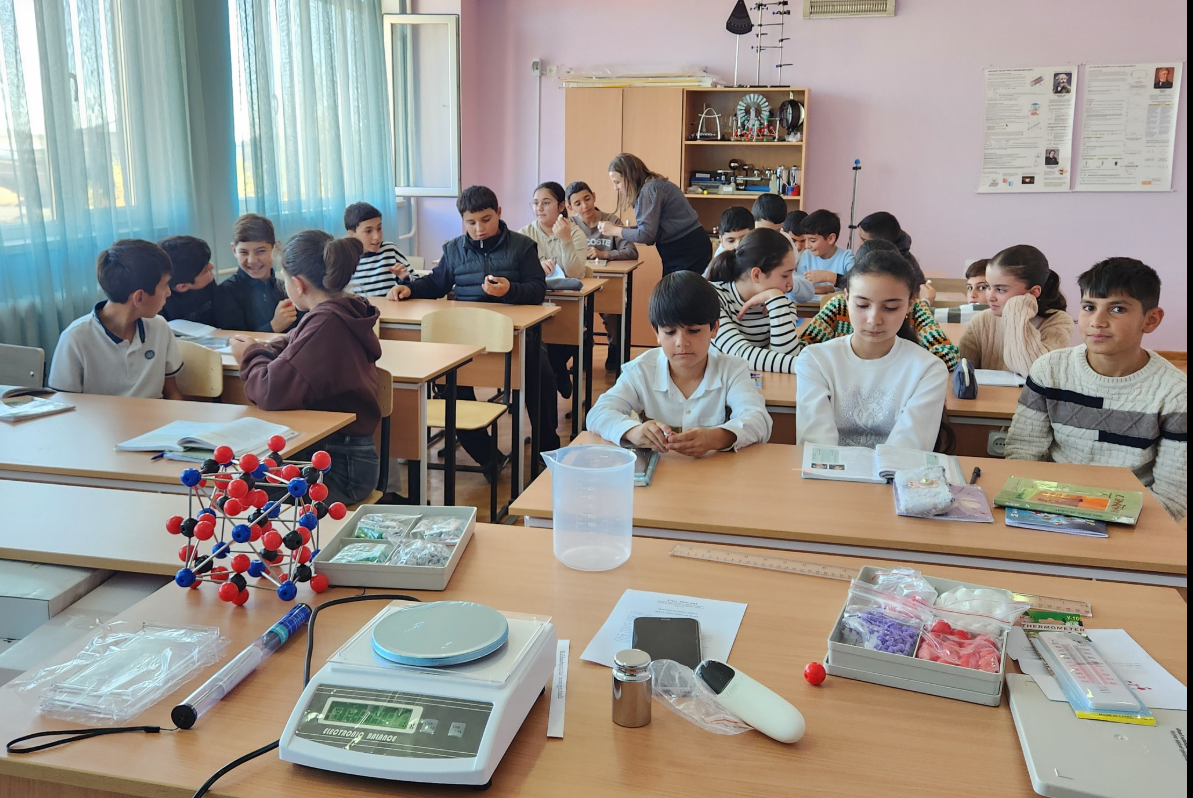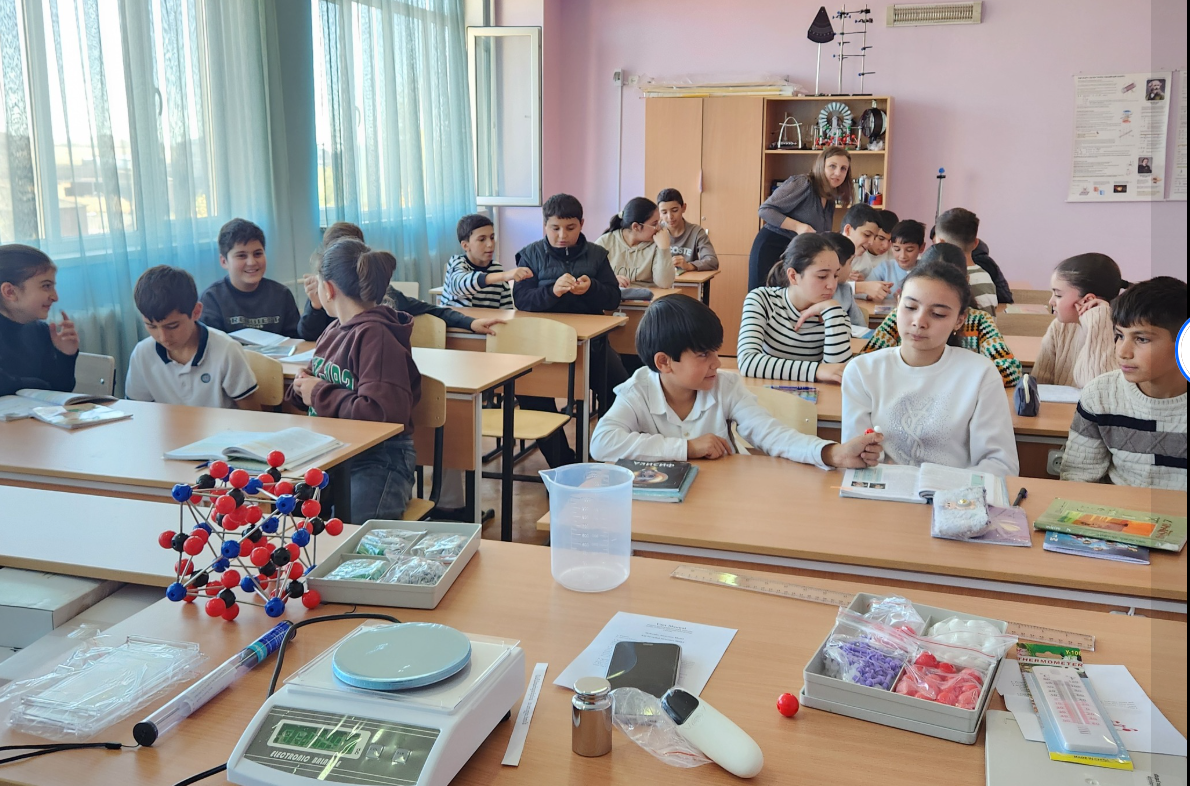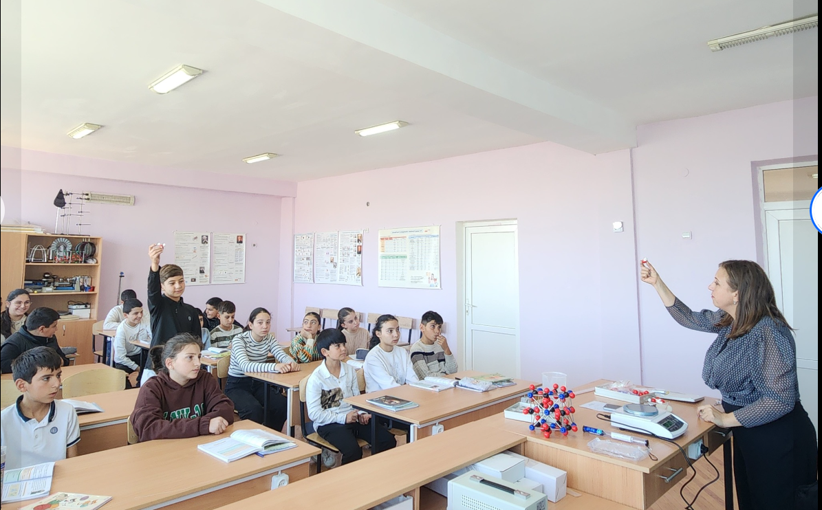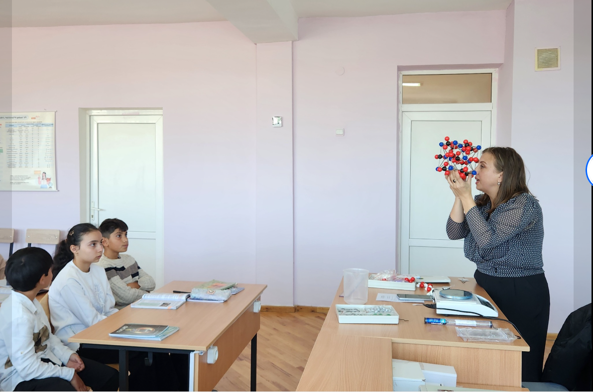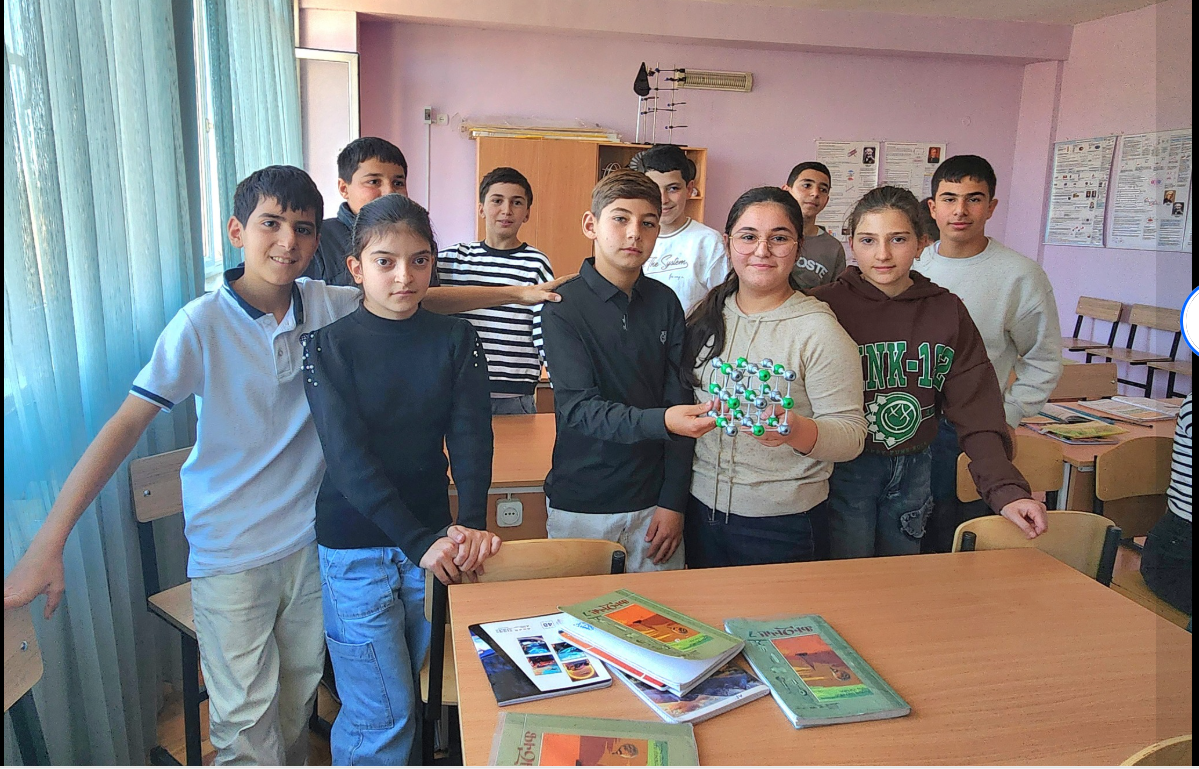 Սովորողները բաժանվեցին երկու խմբերի։ Առաջին խումբը հավաքեց NaCl (կերակրի աղ) բյուրեղացանցի մոդելը` երկրորդ խումբը H2O (ջուր) մոլեկուլային կառուցվածքի մոդելը (ուսուցիչ` Ք. Սարգսյան)։